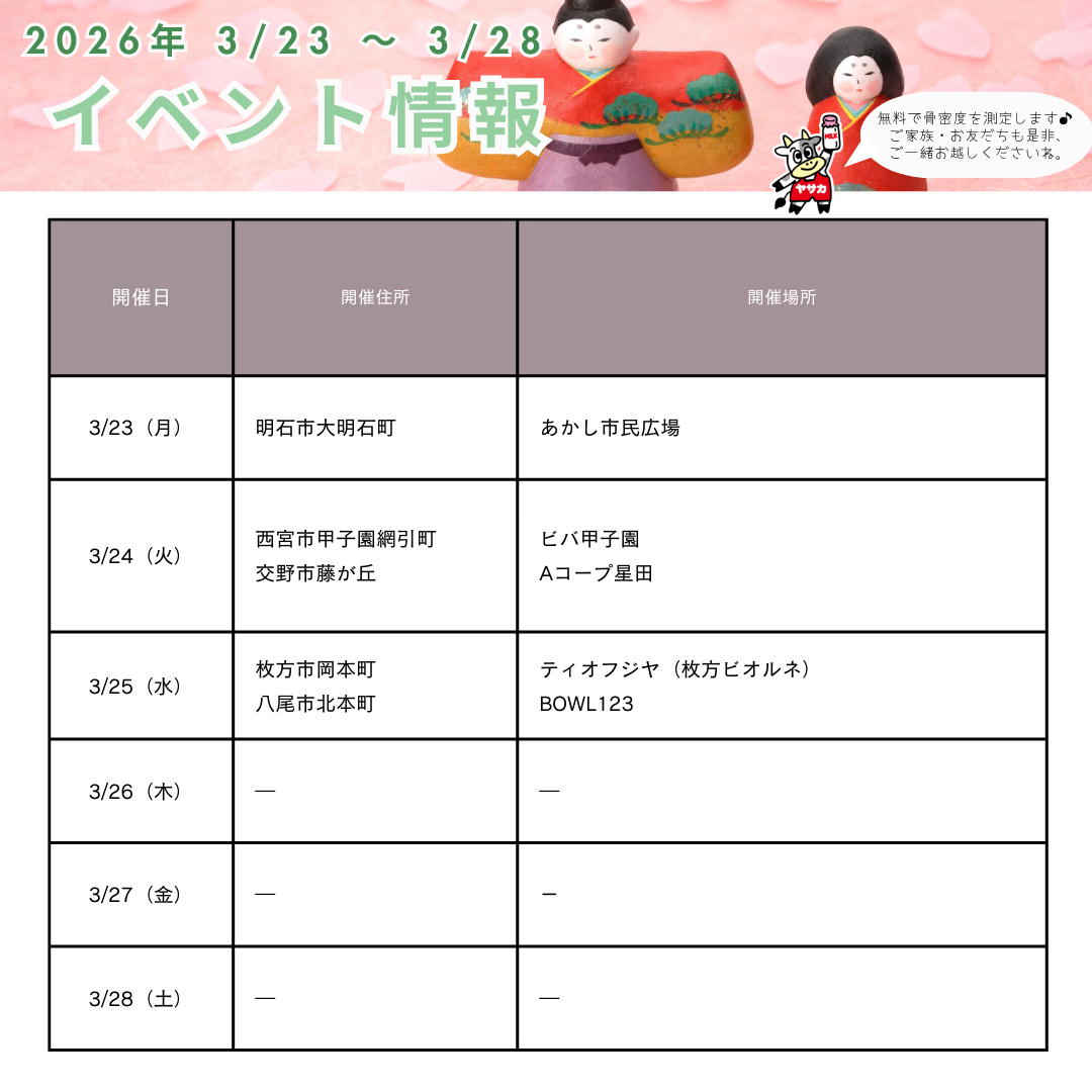 3/23~3/28の骨密度測定会イベント情報です。