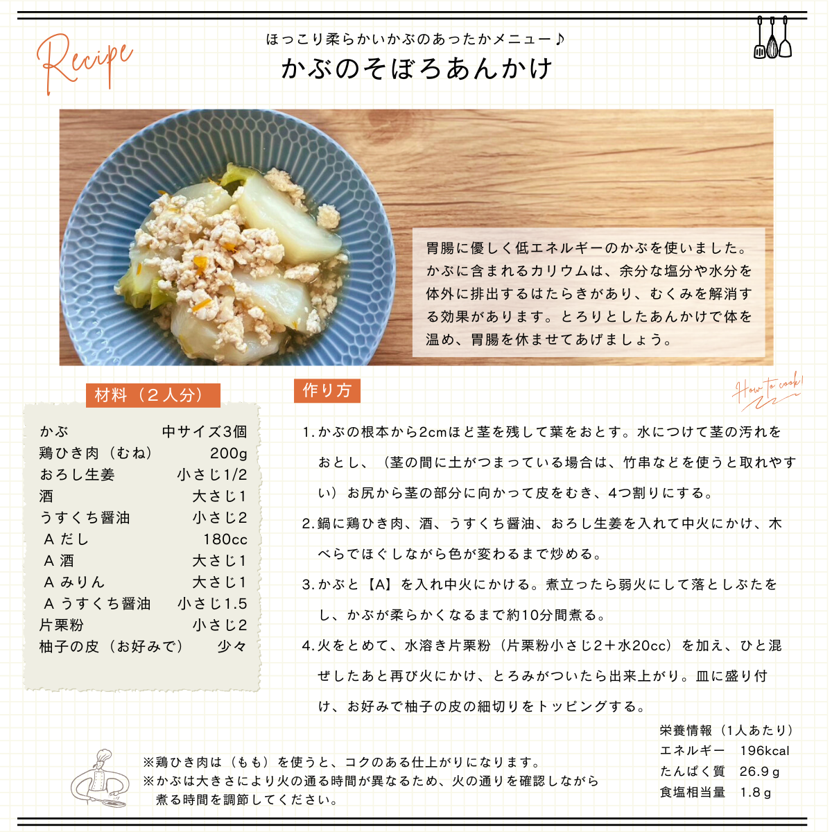 【レシピ】かぶのそぼろあんかけ