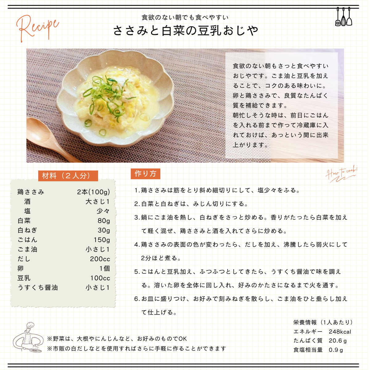 【レシピ】ささみと白菜のおじや